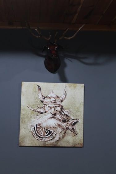 Step into the tranquil beauty of the North in our Nordic Haven room, inspired by minimalist Scandinavian design and cozy Viking charm for a peaceful and refreshing stay.